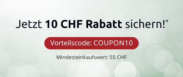 *Ihr 10 CHF Gutschein ist nur einmalig gültig ab 55 CHF Mindesteinkaufswert bei einer Bestellung bis zum 07.11.2025. Keine Barauszahlung. Die Aktion ist nicht übertragbar und kann nicht in Verbindung mit anderen Aktionen oder bei Kooperationspartnern eingelöst werden. Die Vorteilsnummer muss bei der Bestellung angegeben werden. Bei Unterschreitung des Mindesteinkaufswertes durch Widerruf behalten wir uns das Recht vor, Den Gutschein zu stornieren. Der Wert von nicht zurückgesendeten Waren ist in diesem Fall in voller Höhe zu bezahlen. Der Gutschein kann nicht auf bereits getätigte Bestellungen gewährt werden. Geschenk-Gutscheine, Bücher sowie Zeitschriften sind von der Aktion ausgenommen.