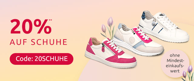 **Ihr 20 % Rabatt ist nur einmalig gültig bei einer Bestellung bis zum 01.02.2026. Keine Barauszahlung. Der Rabatt gilt nur für Produkte aus der Kategorie „Schuhe“. Die Aktion ist nicht übertragbar und kann nicht in Verbindung mit anderen Aktionen oder bei Kooperationspartnern eingelöst werden. Die Vorteilsnummer muss bei der Bestellung angegeben werden. Der Rabatt kann nicht auf bereits getätigte Bestellungen gewährt werden. Geschenk-Gutscheine, Bücher und Zeitschriften sind von der Aktion ausgenommen.